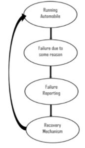 In this model the failures are induced during the simulation run. For example, a case where a core fails, the power spikes too high or the incorrect signals interpreted by the sensors. A bug in the code, a ”missing” requirement, corruption of a variable during operation, a clock signal not getting generated, a CAN message not transmitted, a bit flip, each of these is a final consequences of the fault wherein a functionality does not work as required. Failures cover a very broad spectrum of abnormalities. The failure of such a system could have a significant impact on the safety of the humans and/or the environment.