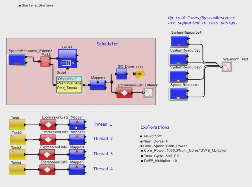 By using a system modeling tool, we can assemble a virtual prototype very quickly on a graphical discrete-event simulation platform with a large library of hardware and software modeling components [7].