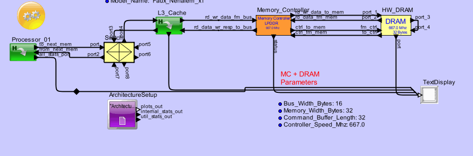 <h2>TextDisplay</h2><table border="1"><tr><td><b>Parameter</b></td><td><b>Expression</b></td><td><b>Value</b></td></tr><tr><td>Block_Documentation</td><td>Enter User Documentation Here</td><td>Enter User Documentation Here</td></tr><tr><td>rowsDisplayed</td><td>10</td><td>10</td></tr><tr><td>columnsDisplayed</td><td>40</td><td>40</td></tr><tr><td>suppressBlankLines</td><td>false</td><td>false</td></tr><tr><td>title</td><td>&quot;Mem_Stats&quot;</td><td>&quot;Mem_Stats&quot;</td></tr><tr><td>ViewText</td><td>true</td><td>true</td></tr><tr><td>saveText</td><td>false</td><td>false</td></tr><tr><td>fileName</td><td>Enter Filename to save text</td><td>&quot;Enter Filename to save text&quot;</td></tr><tr><td>Append_Time</td><td>true</td><td>true</td></tr></table> <h2>Processor_01</h2><table border="1"><tr><td><b>Parameter</b></td><td><b>Expression</b></td><td><b>Value</b></td></tr><tr><td>Block_Documentation</td><td>Enter User Documentation Here</td><td>Enter User Documentation Here</td></tr><tr><td>Sim_Time</td><td>Sim_Time</td><td>169.0</td></tr><tr><td>Data_Structure</td><td>Data_Structure</td><td>&quot;Processor_DS&quot;</td></tr><tr><td>Destination_Name</td><td>&quot;SDRAM&quot;</td><td>&quot;SDRAM&quot;</td></tr><tr><td>Data_Size</td><td>16</td><td>16</td></tr><tr><td>Priority</td><td>1</td><td>1</td></tr><tr><td>Architecture_Name</td><td>Architecture_Name</td><td>&quot;Architecture_1&quot;</td></tr><tr><td>Processor_ID</td><td>1</td><td>1</td></tr><tr><td>L2_cache_KB</td><td>256</td><td>256</td></tr><tr><td>L1_cache_KB</td><td>32</td><td>32</td></tr><tr><td>L2_cache_associativity</td><td>8  /* 0 (Full Associaitive,1(Direct),2,4,8,16,32 */</td><td>8</td></tr><tr><td>L1_cache_associativity</td><td>4  /* 0 (Full Associaitive,1(Direct),2,4,8,16,32 */</td><td>4</td></tr><tr><td>L1_cache_replacement_policy</td><td>&quot;Least_Recently_Used&quot;  /* Least_Recently_Used, Most_Recently_Used */</td><td>&quot;Least_Recently_Used&quot;</td></tr><tr><td>L2_cache_replacement_policy</td><td>&quot;Least_Recently_Used&quot;  /* Least_Recently_Used, Most_Recently_Used */</td><td>&quot;Least_Recently_Used&quot;</td></tr><tr><td>L1_cache_line_words</td><td>16</td><td>16</td></tr><tr><td>L2_cache_line_words</td><td>16</td><td>16</td></tr><tr><td>L1_cache_write_policy</td><td>&quot;Write_Back&quot;  /* Write_Back, Write_Through */</td><td>&quot;Write_Back&quot;</td></tr><tr><td>L2_cache_write_policy</td><td>&quot;Write_Back&quot;  /* Write_Back, Write_Through */</td><td>&quot;Write_Back&quot;</td></tr><tr><td>L1_cache_prefetch_lines</td><td>1  /* 0,1,2,3... */</td><td>1</td></tr><tr><td>L2_cache_prefetch_lines</td><td>1  /* 0,1,2,3... */</td><td>1</td></tr><tr><td>L1_cache_bus_width_bytes</td><td>16</td><td>16</td></tr><tr><td>L2_cache_bus_width_bytes</td><td>16</td><td>16</td></tr><tr><td>L1_cache_speed_MHz</td><td>2660.0</td><td>2660.0</td></tr><tr><td>L2_cache_speed_MHz</td><td>2660.0</td><td>2660.0</td></tr><tr><td>L1_cache_DRAM_name</td><td>&quot;SDRAM&quot;</td><td>&quot;SDRAM&quot;</td></tr><tr><td>L1_cache_first_word_flag</td><td>false</td><td>false</td></tr><tr><td>L1_cache_snooping_flag</td><td>false</td><td>false</td></tr><tr><td>L1_cache_bytes_per_word</td><td>16</td><td>16</td></tr><tr><td>L2_cache_DRAM_name</td><td>&quot;SDRAM&quot;</td><td>&quot;SDRAM&quot;</td></tr><tr><td>L2_cache_first_word_flag</td><td>false</td><td>false</td></tr><tr><td>L2_cache_snooping_flag</td><td>false</td><td>false</td></tr><tr><td>L2_cache_bytes_per_word</td><td>16</td><td>16</td></tr><tr><td>Input_File</td><td>profile</td><td>&quot;cache_log.hello_profile.txt&quot;</td></tr><tr><td>Recycle_Input</td><td>false</td><td>false</td></tr><tr><td>L1_cache_overhead_cycles</td><td>4</td><td>4</td></tr><tr><td>L2_cache_overhead_cycles</td><td>15</td><td>15</td></tr><tr><td>view_plot</td><td>view_plot</td><td>true</td></tr><tr><td>save_plot</td><td>save_plot</td><td>false</td></tr><tr><td>Output_File</td><td>Model_Name + &quot;_&quot; + Processor_ID + &quot;.plt&quot;</td><td>&quot;Faux_Nehalem_x1_1.plt&quot;</td></tr></table> <h2>L3_Cache</h2><table border="1"><tr><td><b>Parameter</b></td><td><b>Expression</b></td><td><b>Value</b></td></tr><tr><td>Architecture_Name</td><td>&quot;Architecture_1&quot;</td><td>&quot;Architecture_1&quot;</td></tr><tr><td>Cache_Name</td><td>&quot;L3_Cache&quot;</td><td>&quot;L3_Cache&quot;</td></tr><tr><td>Cache_Size_KB</td><td>8192</td><td>8192</td></tr><tr><td>Cache_Speed_Mhz</td><td>2660.0</td><td>2660.0</td></tr><tr><td>Cache_Bytes_per_Word</td><td>16</td><td>16</td></tr><tr><td>Bus_Width_Bytes</td><td>16</td><td>16</td></tr><tr><td>Cache_Line_Words</td><td>16</td><td>16</td></tr><tr><td>Cache_N_Associativity</td><td>16  /* 0 (Full Associaitive,1(Direct),2,4,8,16,32 */</td><td>16</td></tr><tr><td>Cache_Replacement_Policy</td><td>&quot;Least_Recently_Used&quot;  /* Least_Recently_Used, Most_Recently_Used */</td><td>&quot;Least_Recently_Used&quot;</td></tr><tr><td>Cache_Write_Policy</td><td>&quot;Write_Back&quot;  /* Write_Back, Write_Through */</td><td>&quot;Write_Back&quot;</td></tr><tr><td>Cache_Prefetch_Lines</td><td>1  /* 0,1,2,3... */</td><td>1</td></tr><tr><td>Overhead_Cycles</td><td>40</td><td>40</td></tr><tr><td>Next_Higher_Memory_Name</td><td>&quot;SDRAM&quot;</td><td>&quot;SDRAM&quot;</td></tr><tr><td>DRAM_Name</td><td>&quot;SDRAM&quot;</td><td>&quot;SDRAM&quot;</td></tr><tr><td>First_Word_Flag</td><td>false</td><td>false</td></tr><tr><td>Snooping_Flag</td><td>false</td><td>false</td></tr><tr><td>Read_File</td><td>&quot;none&quot;</td><td>&quot;none&quot;</td></tr><tr><td>Sim_Time</td><td>Sim_Time</td><td>169.0</td></tr><tr><td>_explanation</td><td>ProcessorGenerator-&gt;CycleAccurateCache</td><td>ProcessorGenerator-&gt;CycleAccurateCache</td></tr><tr><td>Number_Statistics_Samples</td><td>1</td><td>1</td></tr><tr><td>DEBUG</td><td>false</td><td>false</td></tr></table> <h2>Switch</h2><table border="1"><tr><td><b>Parameter</b></td><td><b>Expression</b></td><td><b>Value</b></td></tr><