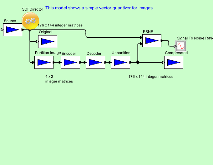 <h2>Signal To Noise Ratio</h2><table border="1"><tr><td><b>Parameter</b></td><td><b>Expression</b></td><td><b>Value</b></td></tr><tr><td>Block_Documentation</td><td>Enter User Documentation Here</td><td>Enter User Documentation Here</td></tr><tr><td>fillOnWrapup</td><td>true</td><td>true</td></tr><tr><td>legend</td><td>PSNR</td><td>PSNR</td></tr><tr><td>startingDataset</td><td>0</td><td>0</td></tr><tr><td>_explanation</td><td>Result-&gt;Plotter-&gt;SequencePlotter</td><td>Result-&gt;Plotter-&gt;SequencePlotter</td></tr><tr><td>xInit</td><td>0.0</td><td>0.0</td></tr><tr><td>xUnit</td><td>1.0</td><td>1.0</td></tr></table> <h2>Original</h2><table border="1"><tr><td><b>Parameter</b></td><td><b>Expression</b></td><td><b>Value</b></td></tr><tr><td>Block_Documentation</td><td>Enter User Documentation Here</td><td>Enter User Documentation Here</td></tr></table> <h2>Compressed</h2><table border="1"><tr><td><b>Parameter</b></td><td><b>Expression</b></td><td><b>Value</b></td></tr><tr><td>Block_Documentation</td><td>Enter User Documentation Here</td><td>Enter User Documentation Here</td></tr></table> <h2>Unpartition</h2><table border="1"><tr><td><b>Parameter</b></td><td><b>Expression</b></td><td><b>Value</b></td></tr><tr><td>Block_Documentation</td><td>Enter User Documentation Here</td><td>Enter User Documentation Here</td></tr><tr><td>imageColumns</td><td>176</td><td>176</td></tr><tr><td>imageRows</td><td>144</td><td>144</td></tr><tr><td>partitionColumns</td><td>blockWidth</td><td>4</td></tr><tr><td>partitionRows</td><td>blockHeight</td><td>2</td></tr></table> <h2>Decoder</h2><table border="1"><tr><td><b>Parameter</b></td><td><b>Expression</b></td><td><b>Value</b></td></tr><tr><td>Block_Documentation</td><td>Enter User Documentation Here</td><td>Enter User Documentation Here</td></tr><tr><td>codeBook</td><td>&quot;/VisualSim/simulators/sdf/lib/vq/data/usc_hvq_s5.dat&quot;</td><td>&quot;/VisualSim/simulators/sdf/lib/vq/data/usc_hvq_s5.dat&quot;</td></tr><tr><td>blockCount</td><td>8</td><td>8</td></tr><tr><td>blockWidth</td><td>blockWidth</td><td>4</td></tr><tr><td>blockHeight</td><td>blockHeight</td><td>2</td></tr></table> <h2>Encoder</h2><table border="1"><tr><td><b>Parameter</b></td><td><b>Expression</b></td><td><b>Value</b></td></tr><tr><td>Block_Documentation</td><td>Enter User Documentation Here</td><td>Enter User Documentation Here</td></tr><tr><td>codeBook</td><td>&quot;/VisualSim/simulators/sdf/lib/vq/data/usc_hvq_s5.dat&quot;</td><td>&quot;/VisualSim/simulators/sdf/lib/vq/data/usc_hvq_s5.dat&quot;</td></tr><tr><td>blockCount</td><td>8</td><td>8</td></tr><tr><td>blockWidth</td><td>blockWidth</td><td>4</td></tr><tr><td>blockHeight</td><td>blockHeight</td><td>2</td></tr></table> <h2>Partition Image</h2><table border="1"><tr><td><b>Parameter</b></td><td><b>Expression</b></td><td><b>Value</b></td></tr><tr><td>Block_Documentation</td><td>Enter User Documentation Here</td><td>Enter User Documentation Here</td></tr><tr><td>imageColumns</td><td>176</td><td>176</td></tr><tr><td>imageRows</td><td>144</td><td>144</td></tr><tr><td>partitionColumns</td><td>blockWidth</td><td>4</td></tr><tr><td>partitionRows</td><td>blockHeight</td><td>2</td></tr></table> <h2>PSNR</h2><table border="1"><tr><td><b>Parameter</b></td><td><b>Expression</b></td><td><b>Value</b></td></tr><tr><td>Block_Documentation</td><td>Enter User Documentation Here</td><td>Enter User Documentation Here</td></tr></table> <h2>Source</h2><table border="1"><tr><td><b>Parameter</b></td><td><b>Expression</b></td><td><b>Value</b></td></tr><tr><td>Block_Documentation</td><td>Enter User Documentation Here</td><td>Enter User Documentation Here</td></tr><tr><td>imageURLTemplate</td><td>&quot;VisualSim/simulators/sdf/lib/vq/data/seq/missa/missa***.qcf&quot;</td><td>&quot;VisualSim/simulators/sdf/lib/vq/data/seq/missa/missa***.qcf&quot;</td></tr><tr><td>imageColumns</td><td>176</td><td>176</td></tr><tr><td>imageRows</td><td>144</td><td>144</td></tr><tr><td>startFrame</td><td>0</td><td>0</td></tr><tr><td>endFrame</td><td>29</td><td>29</td></tr></table>